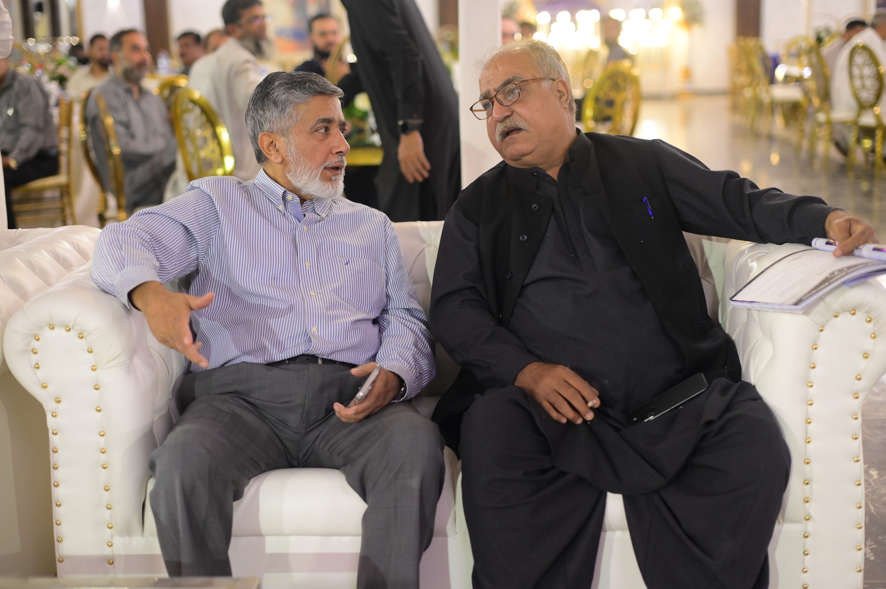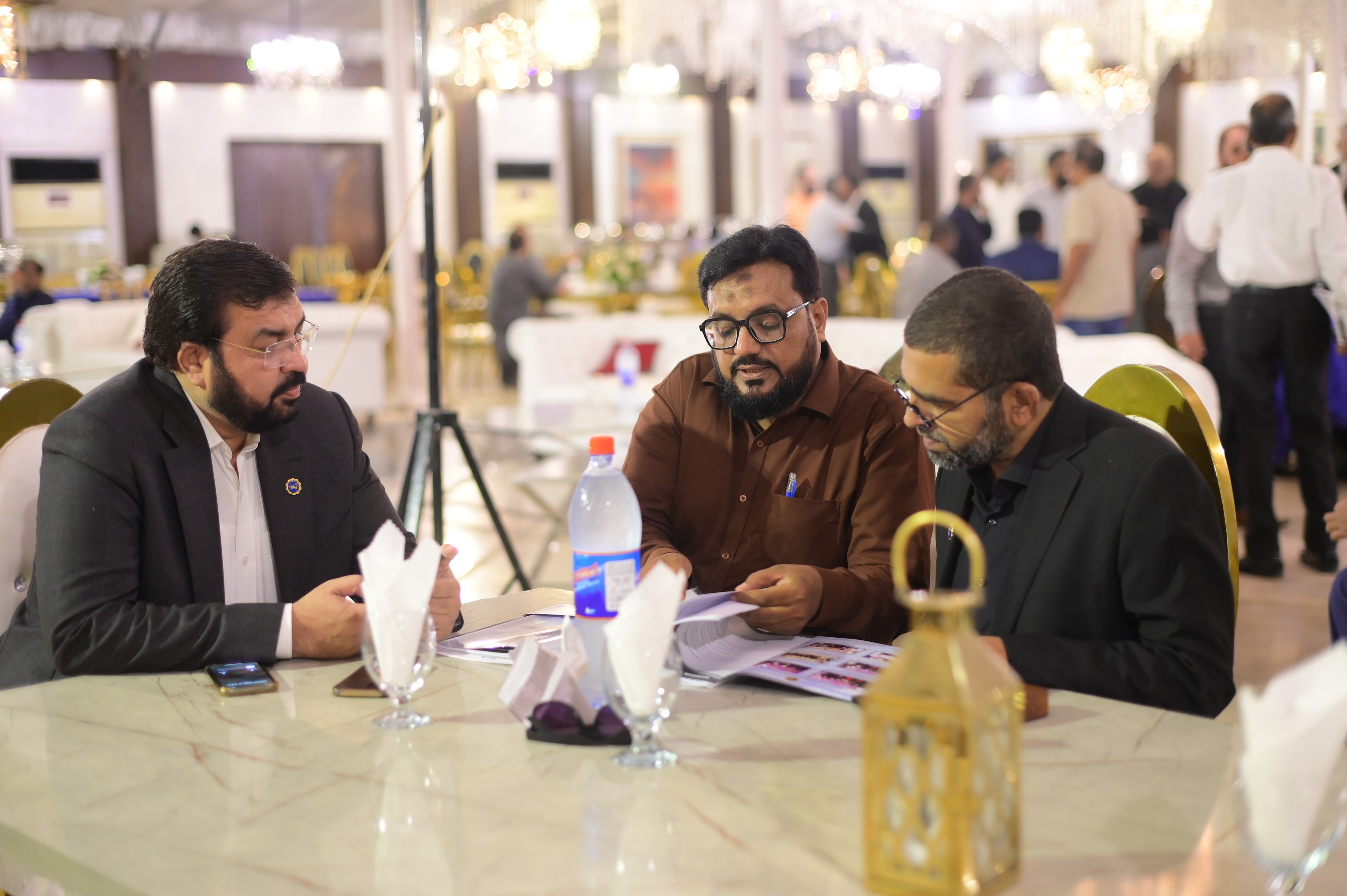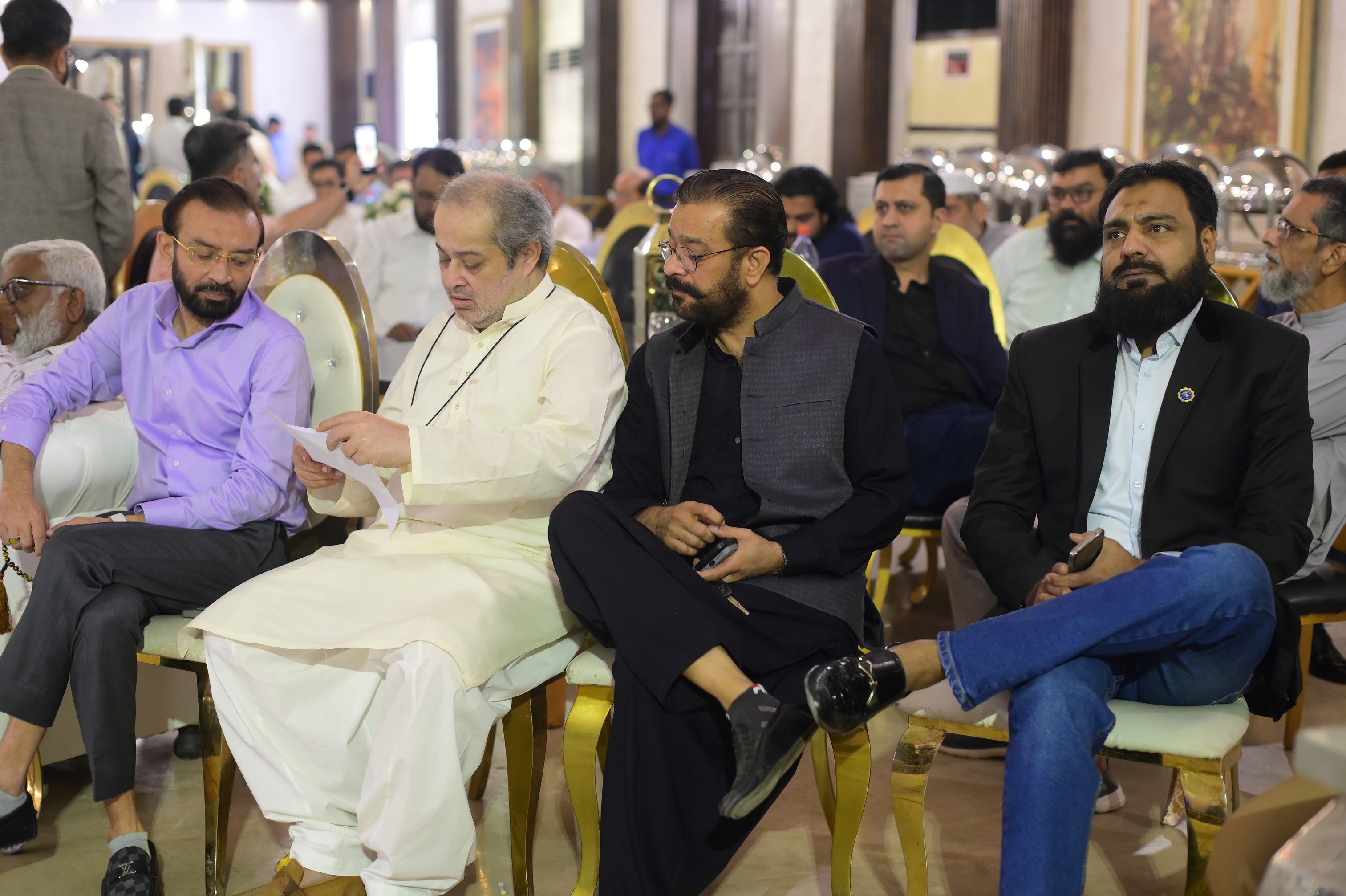 Mr. Arshad Khurshid (President), Mr. Mehmood Ul Hasan Awan (General Secretary) & Mr. Asif Islam (Office Secretary) discussing before starting of 17th AGM held on 30th September 2024 at Majestic Banquet, Karachi