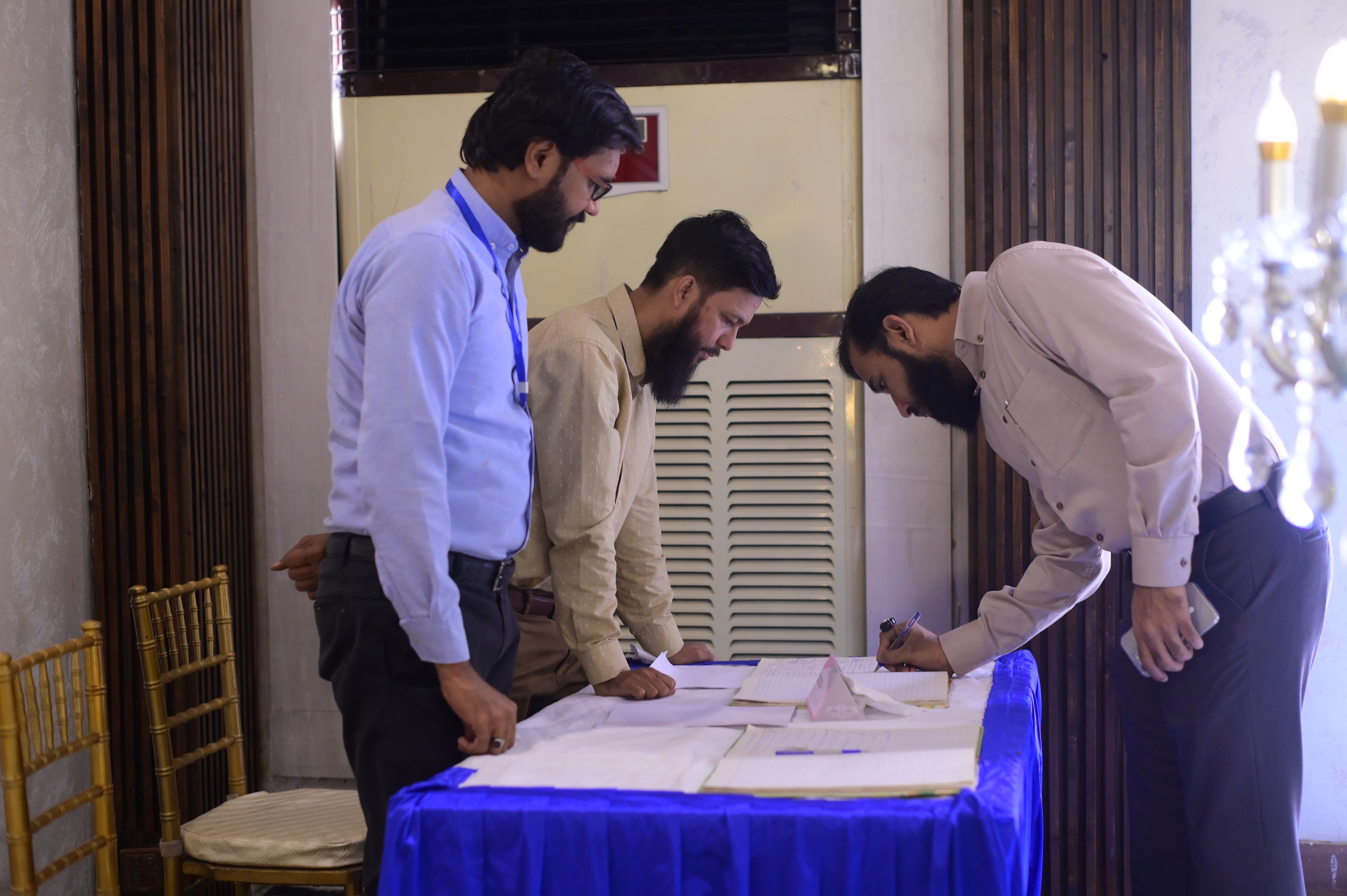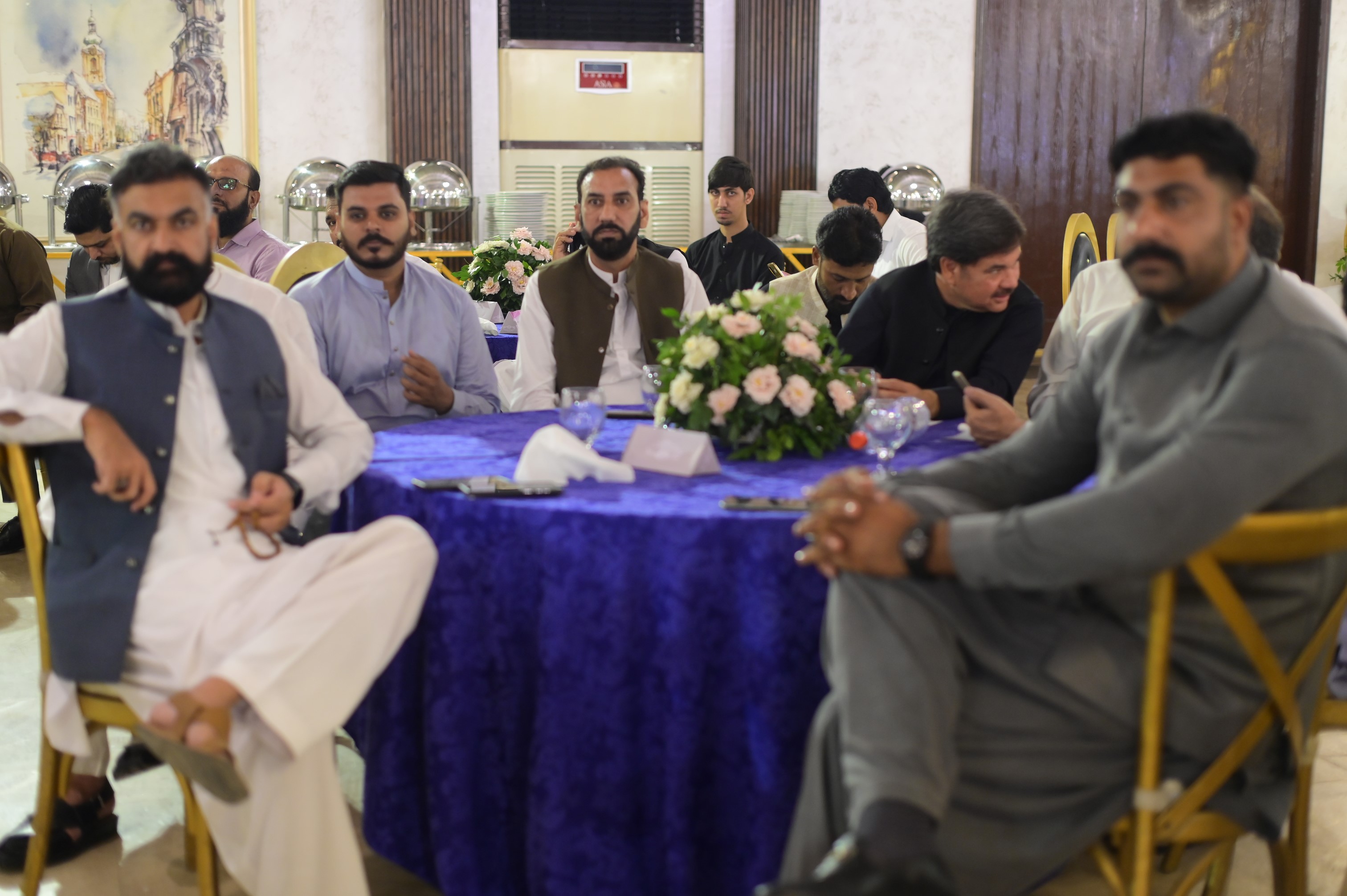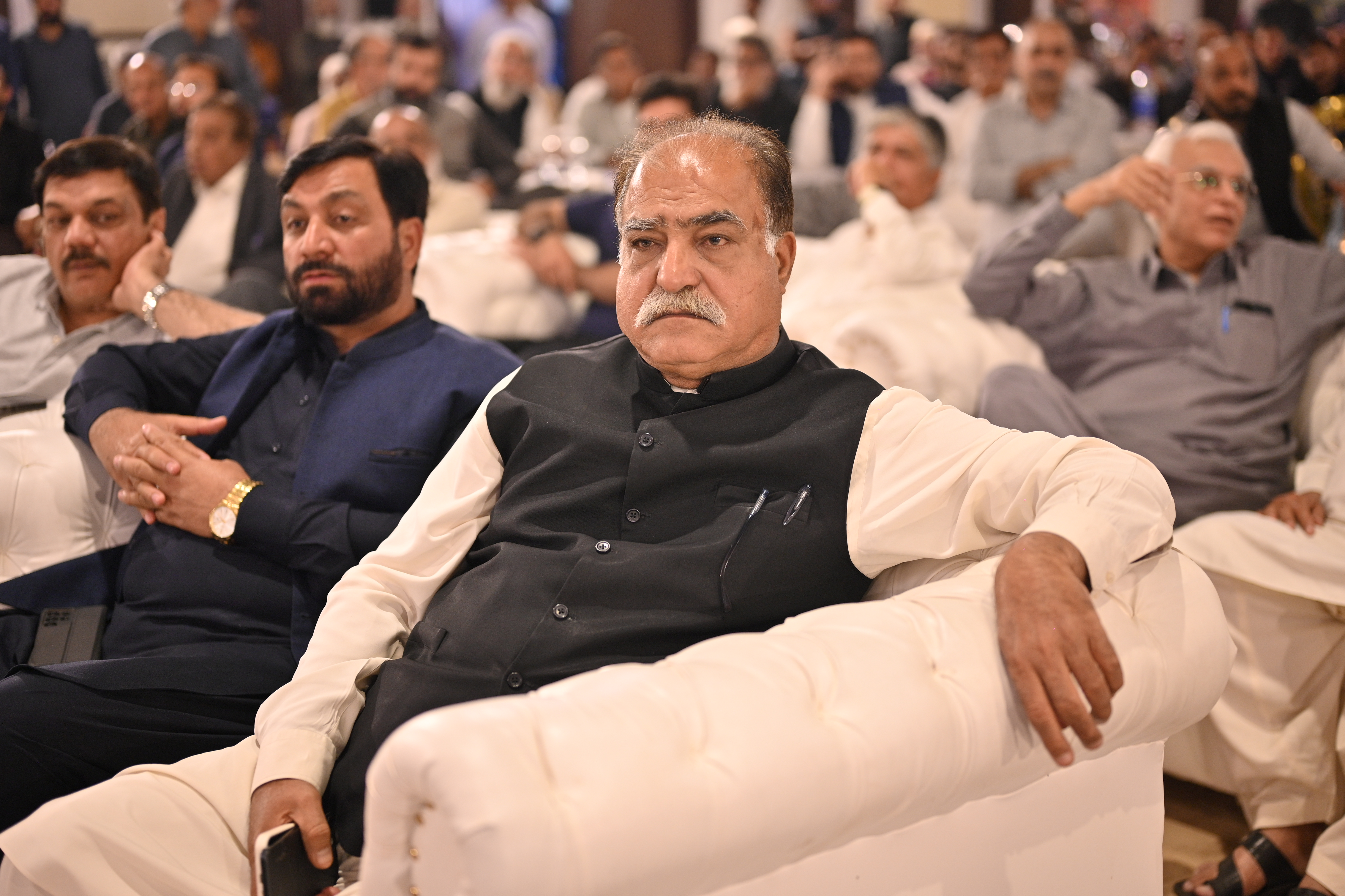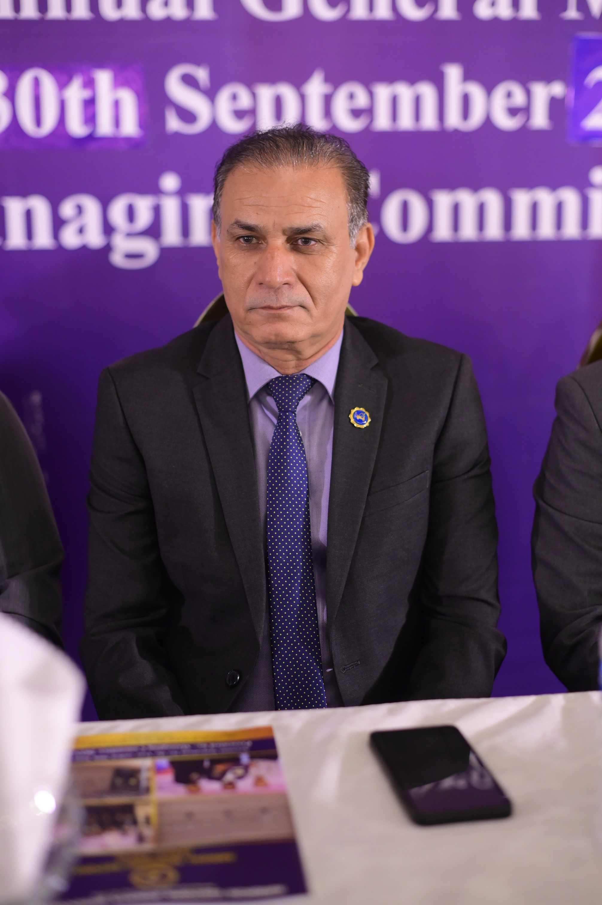 Mr. Arshad Khurshid (President), Mr. Mehmood Ul Hasan Awan (General Secretary) & Mr. Asif Islam (Office Secretary) discussing before starting of 17th AGM held on 30th September 2024 at Majestic Banquet, Karachi