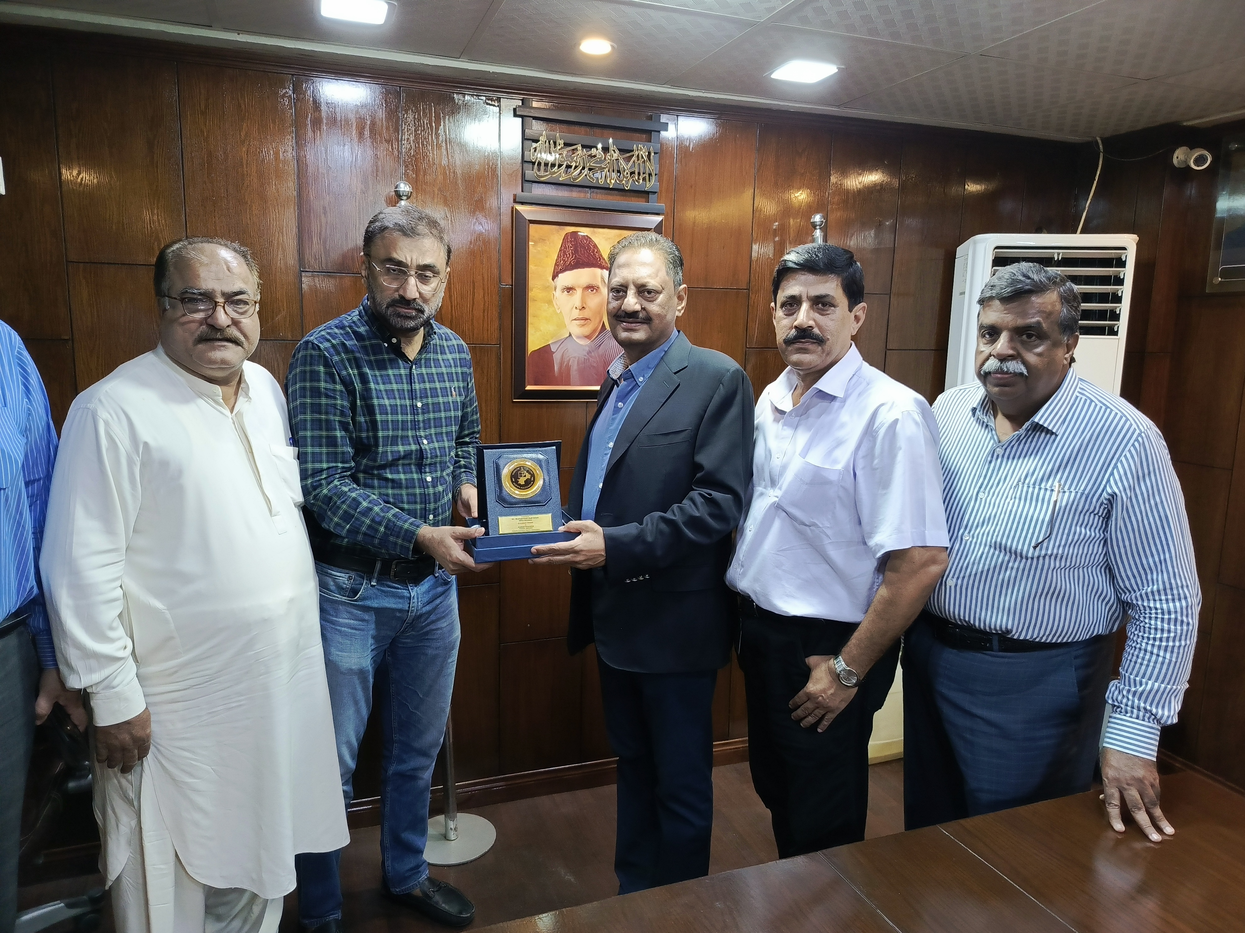 Mr. Muhammad Aamir (President) presenting KCAA’s memento/shield to Mr. Muhammad Javed Hanif Khan (Member National Assembly) during his visit at KCAA Head Office. Mr. Mansoor Ali (General Secretary) and Mr. Saifullah Khan (Chairman APCAA) and Mr. Qamar ul
