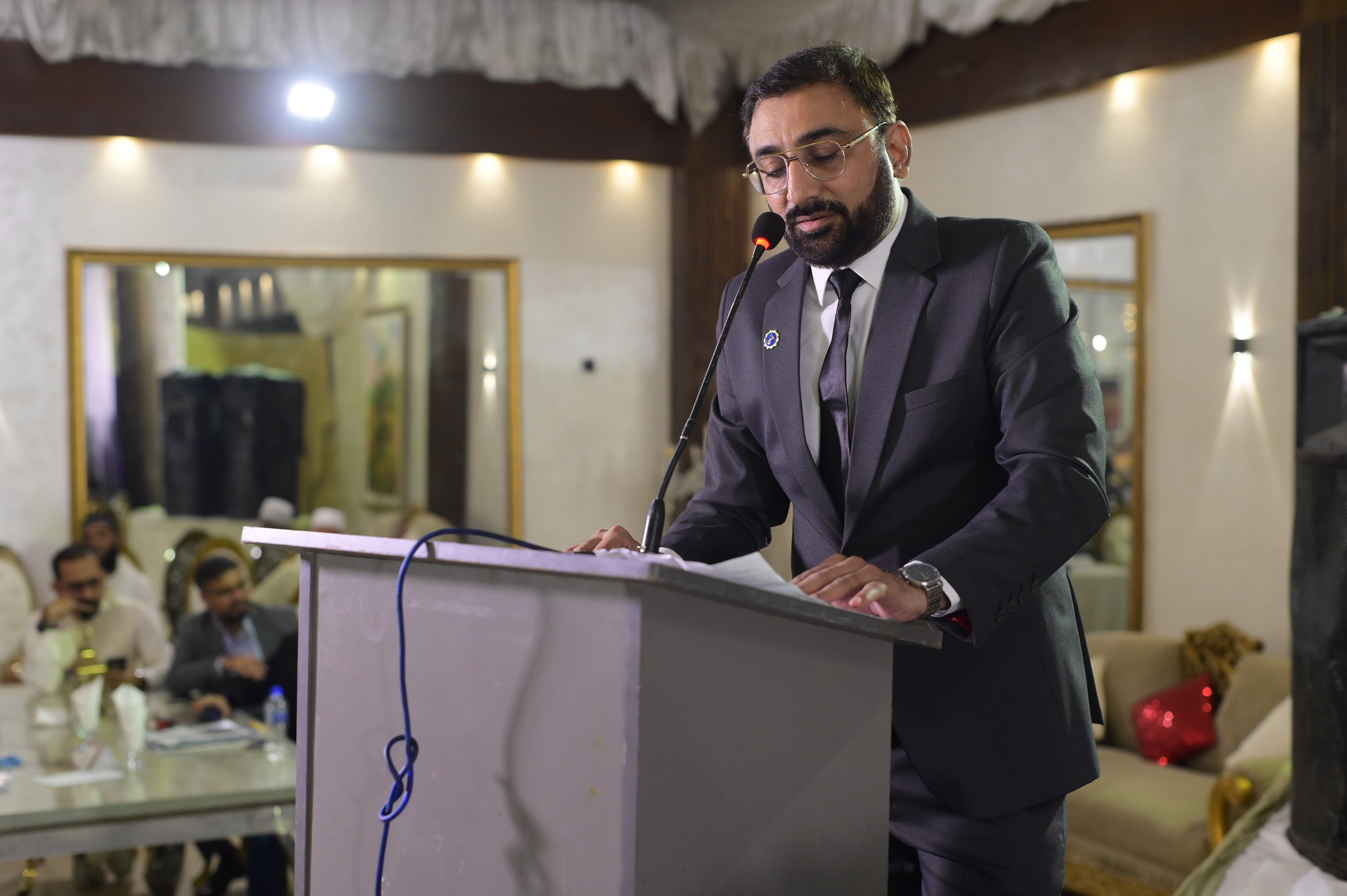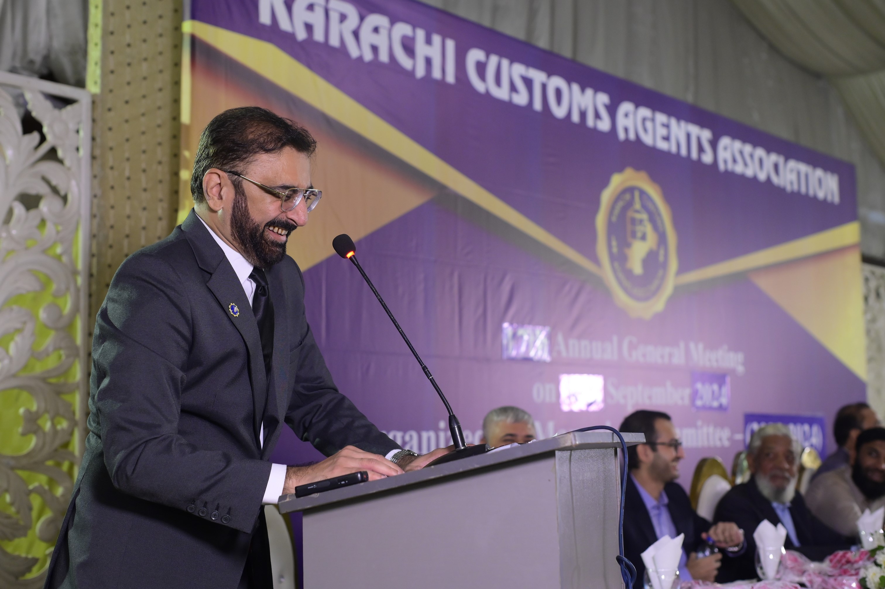 Newly inducted President Mr. Muhammad Aamir while addressing the participants at the event of 17th AGM Meeting held on 30th September 2024 at Majestic Banquet Karachi.