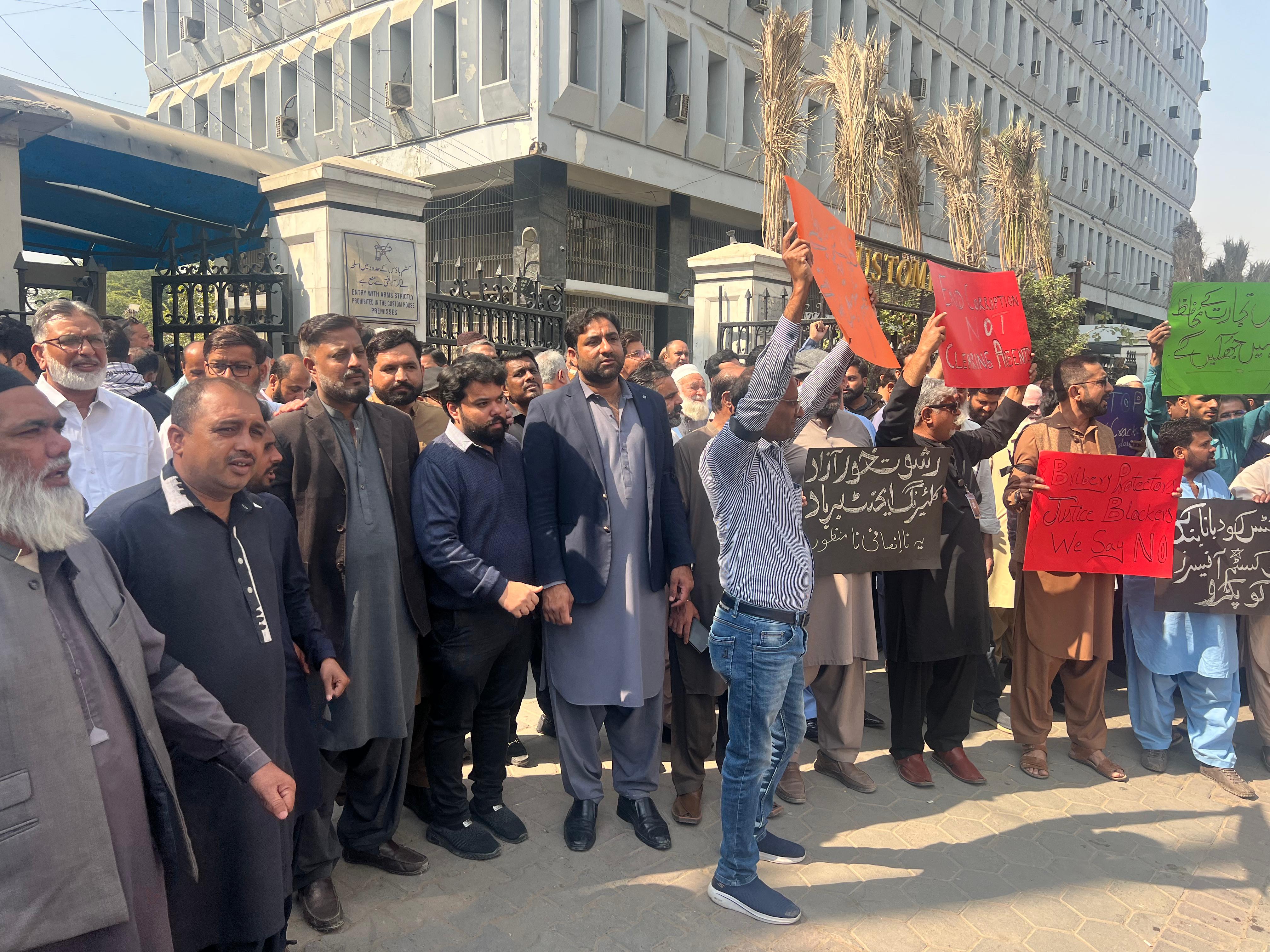 A large number of customs agents alongwith the KCAA representative recorded their protest against the action taken by the customs regarding suspension of 46 customs agents licenses.