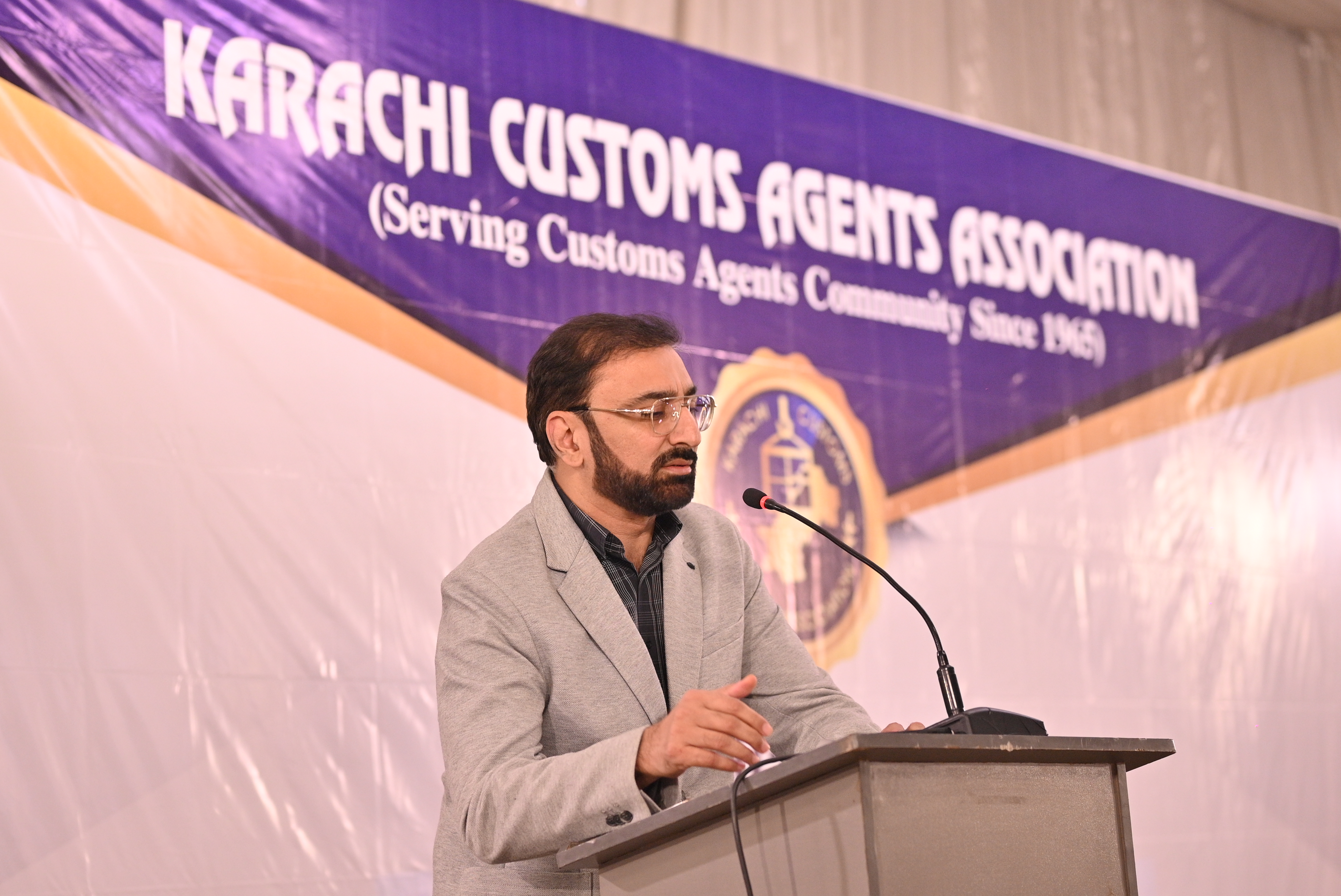 Newly inducted Acting General Secretary Mr. Raheel Gohar while addressing the participants at the event of 17th AGM Meeting held on 30th September 2024 at Majestic Banquet Karachi
